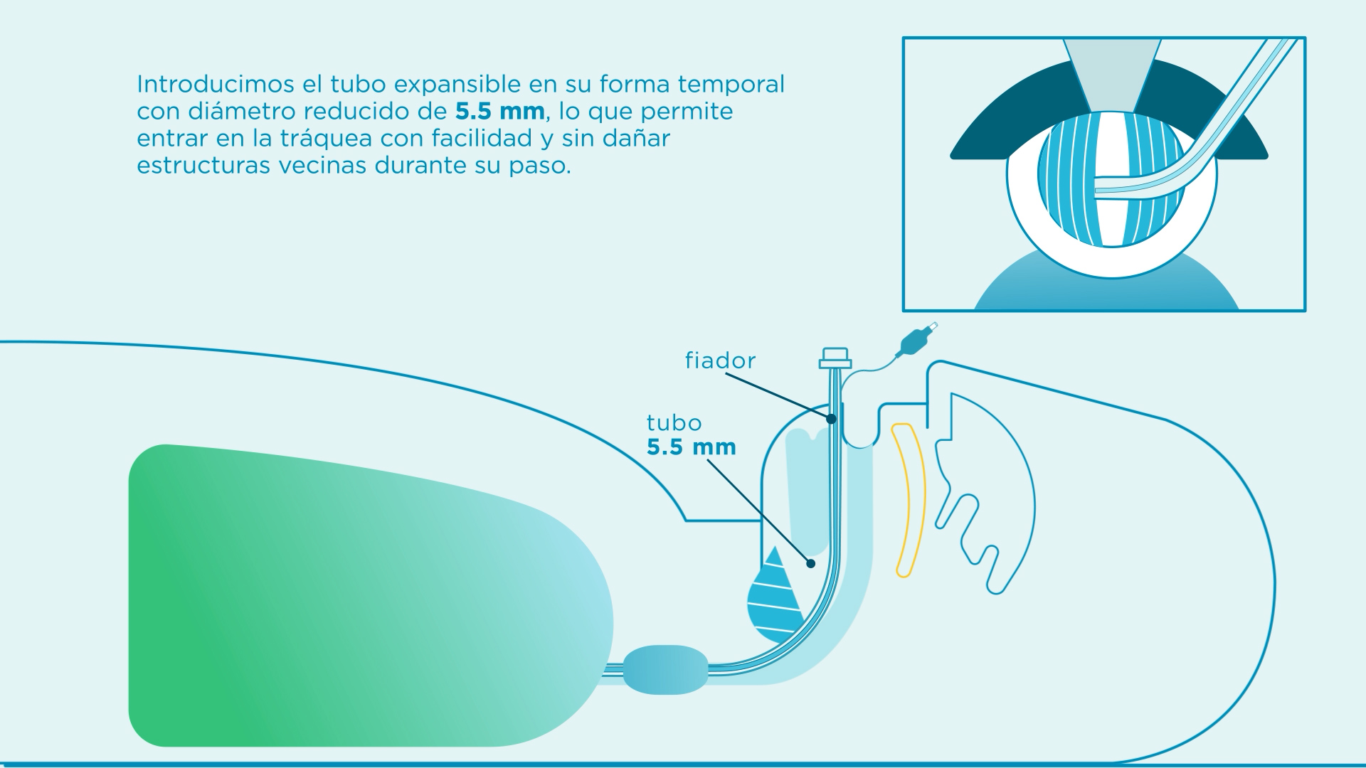 Este tamaño reducido facilitaría la entrada en la tráquea y, una vez alojado en ella en la posición correcta, adquiriría el diámetro adecuado definitivo.