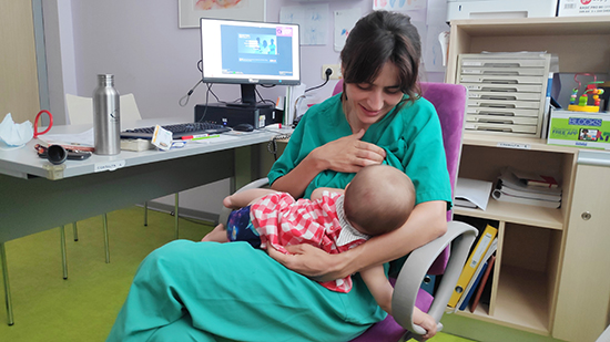 “También contamos con una sala de lactancia en la propia unidad, para la formación y apoyo en la extracción de leche materna en los casos de madres que no pueden amamantar de manera directa. Fuera del período puerperal, en casos de patología materna que requieran hospitalización, se promueve el ingreso conjunto madre-lactante siempre que la situación clínica lo permita, nos comunicamos con los facultativos a cargo de la madre para revisar la seguridad de los fármacos que esta pueda precisar y su compatibilidad con la lactancia materna y, en caso necesario, se favorece la extracción y conservación de leche para poder mantener la lactancia materna”.